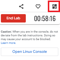 Use this feature if you want a full-screen view of the terminal. You can close this window at any time. Closing the window does not end your lab, and you can continue working in the terminal in the original tab.