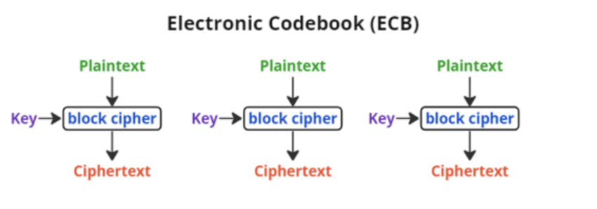 1) 전자 코드 북(ECB, Electronic CodeBook) 모드